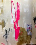 inspired by a movie poster and my love of color, my hot pink series was born. consisting of fluorescent pink, gold, nudes, and grays (and perhaps delving into more shades), the color scheme is a fresh take on the bold, complex themes in my artwork. the hot pink is a statement color; i love its unexpected nature and its ability to brightly, boldly convey emotion.